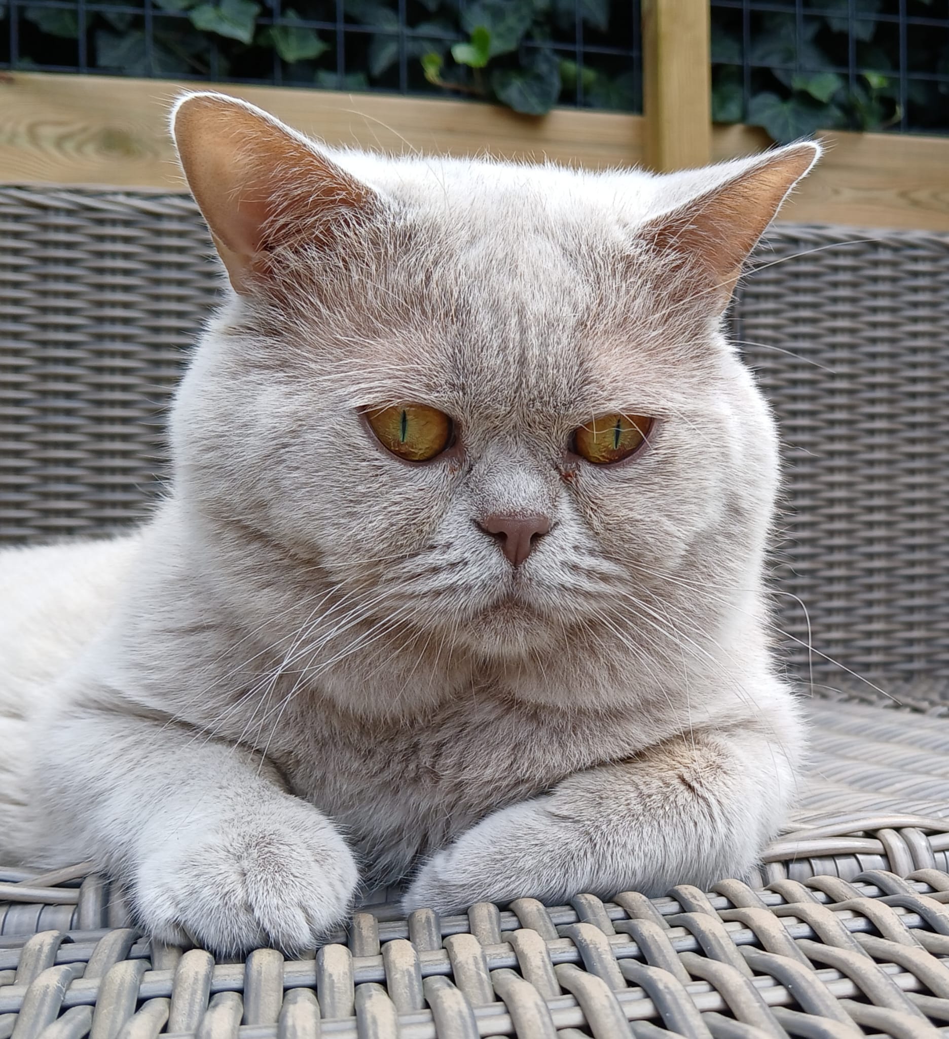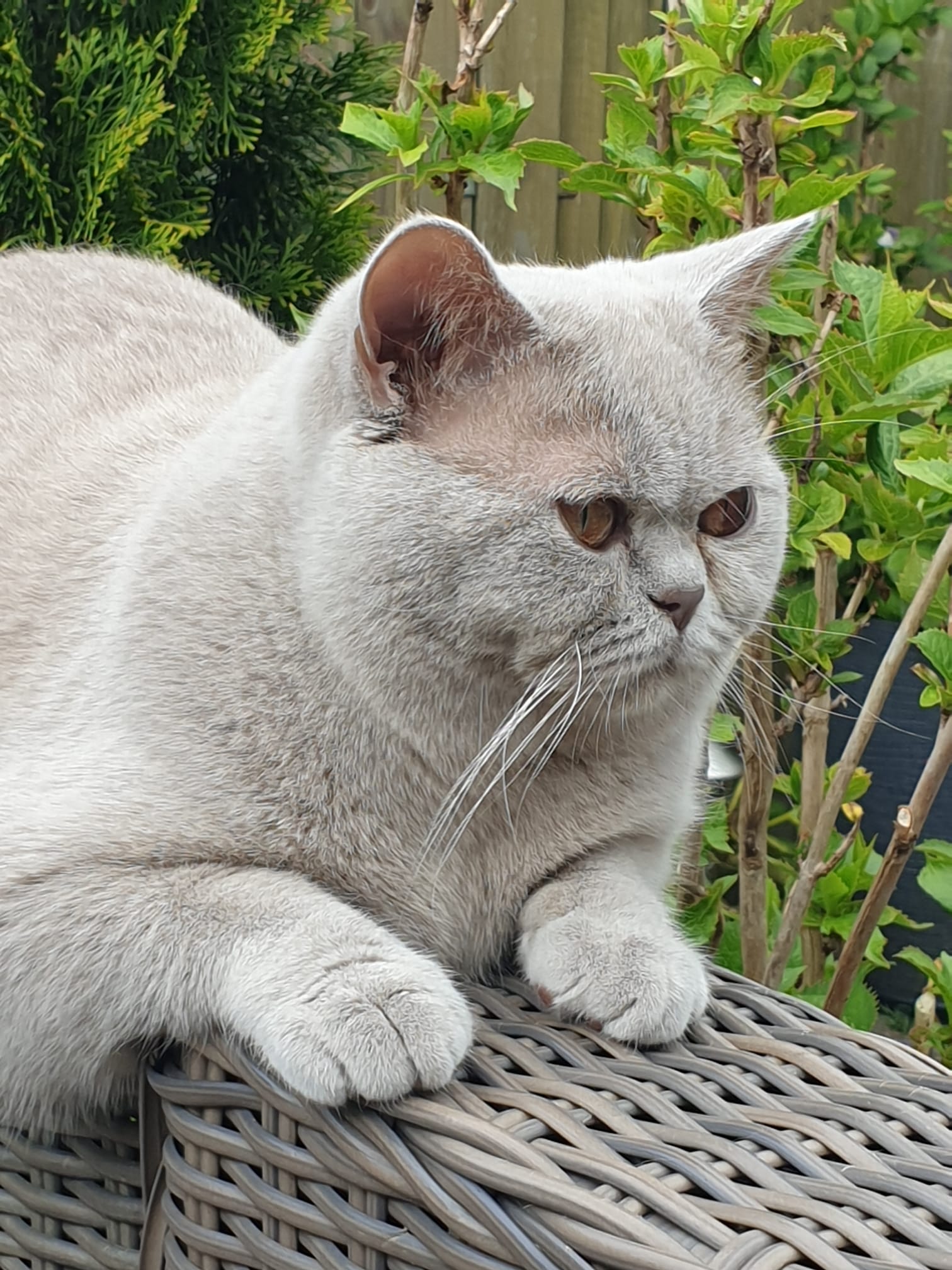 Jay is niet zo’n grote kater van formaat, hij is wat kleiner dan de gemiddelde brits korthaar kater. Jay weegt 5 kg en heeft blauw, lilac, crème en point in zijn lijn.
